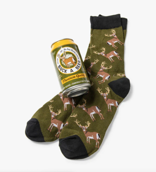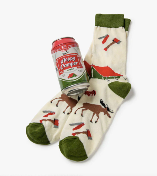 Sit back, relax, and crack open a refreshing can of crew socks! These ones are unbeerlievably comfortable. FEATURES: 4.875” high x 2.5” deep, Comfy socks with fun designs, Contrast heel and toe, Machine washable and made of 62% cotton, 37% nylon, 1% spandex.