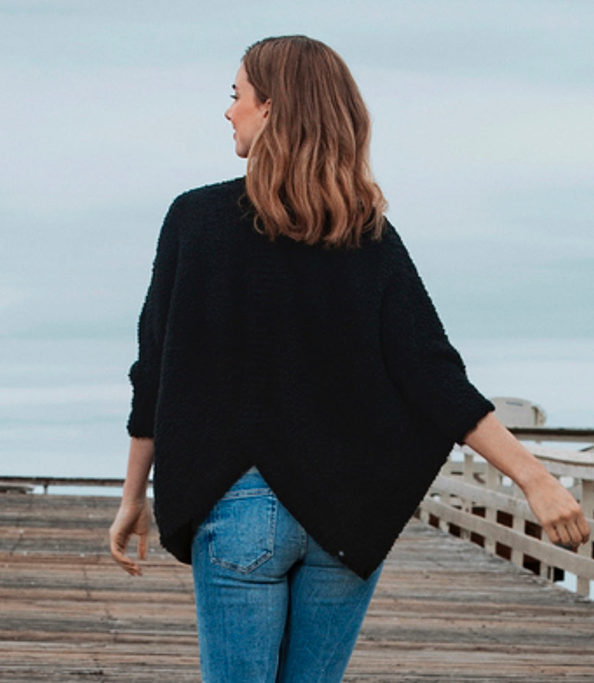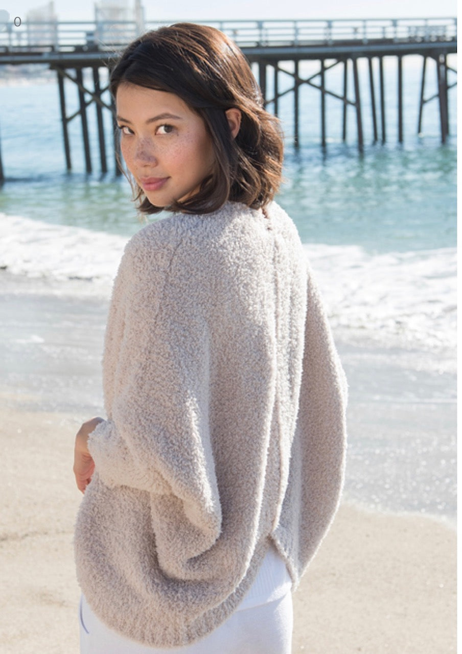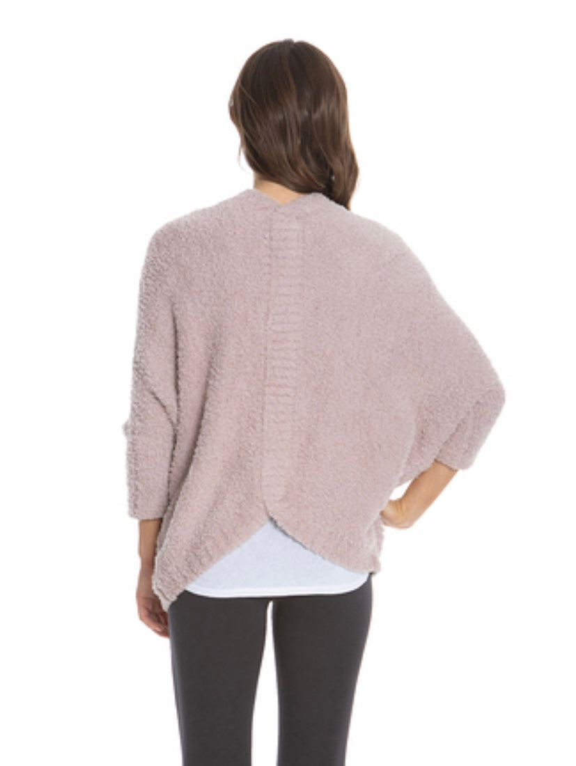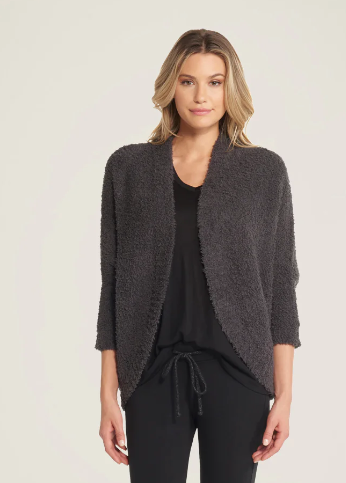 COZY CHIC. Add a layer of luxury with our CozyChic shrug. This relaxed roomy style is perfect for covering your shoulders and wrapping it across your body for extra warmth. Ribbed border detail with an eye catching ribbed center back seam and curved sweep.