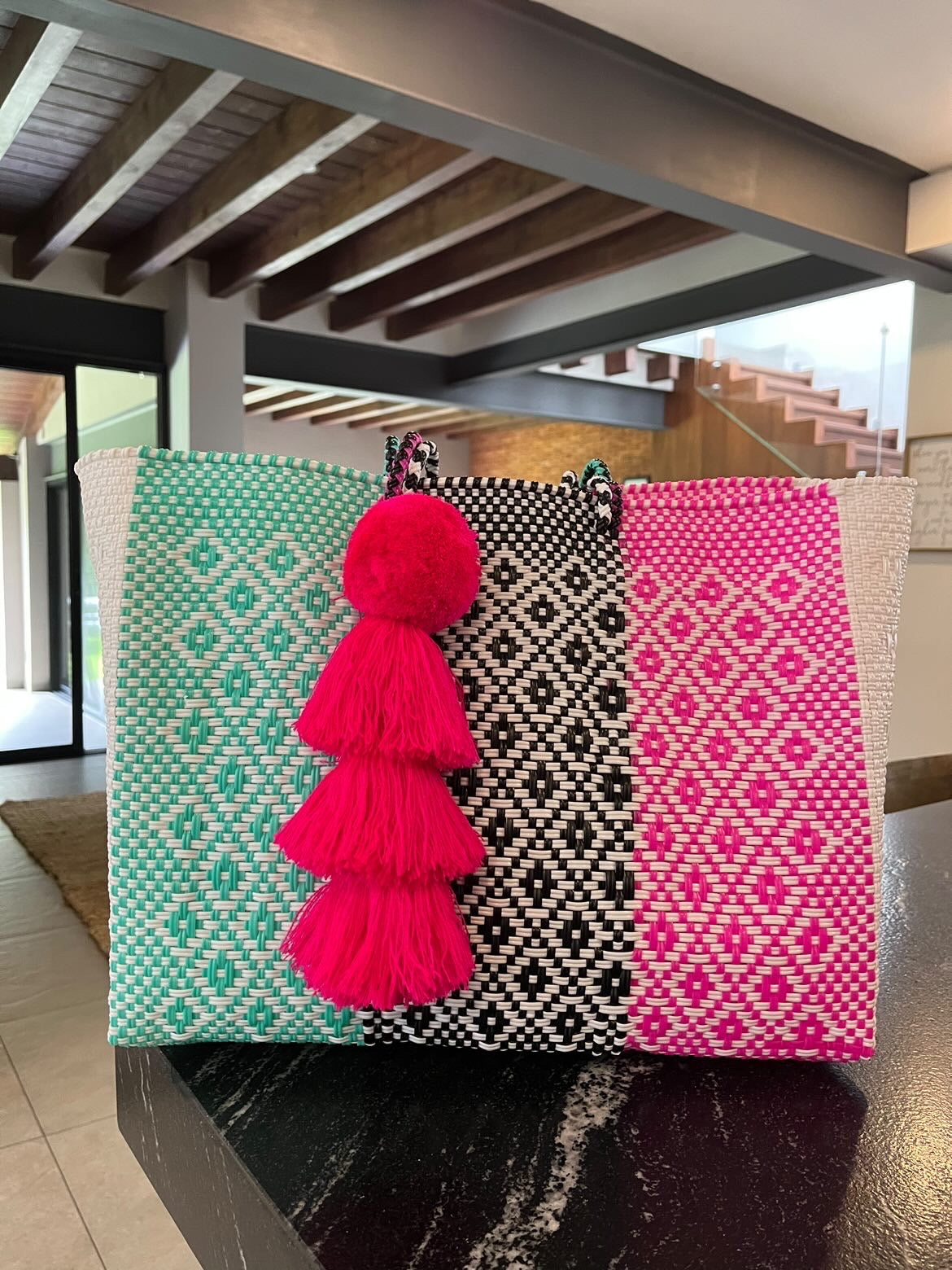 • large handles woven in to the design of the bag