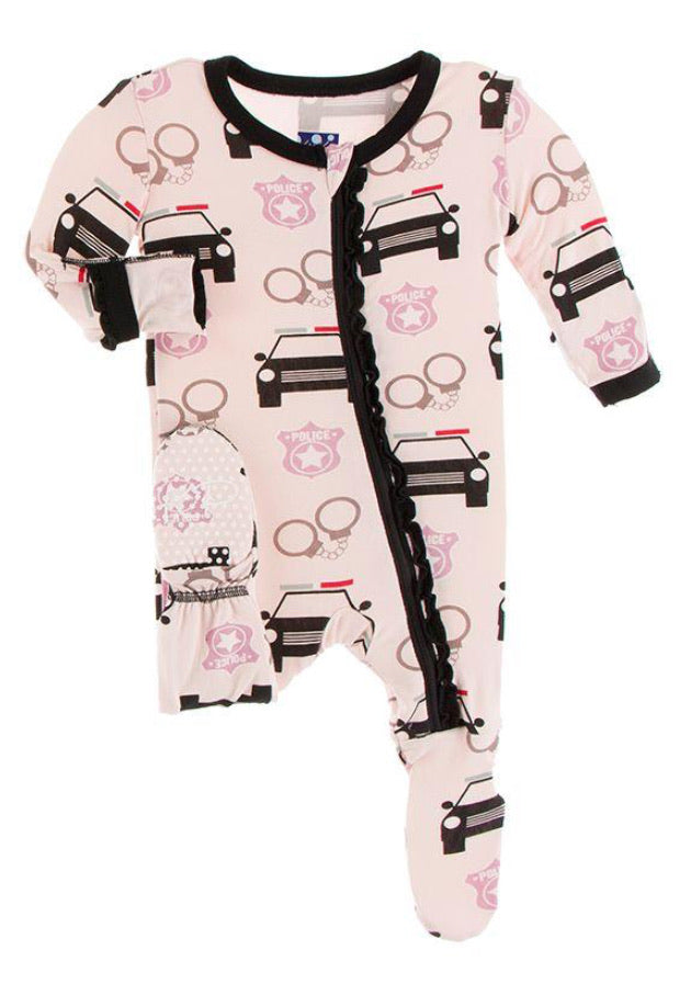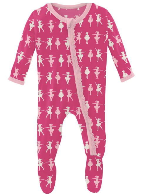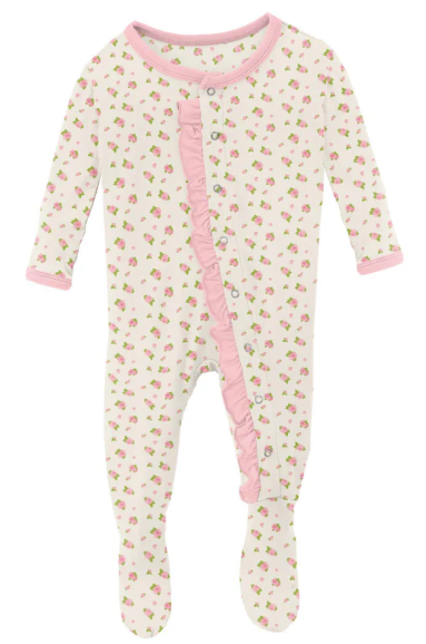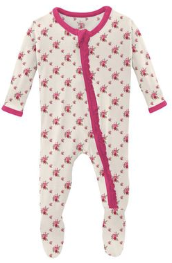 Good news! Our beloved Ruffle Footie now comes with a zipper! All the same comfy, ruffly goodness, with the ease of a zipper for quick changes.